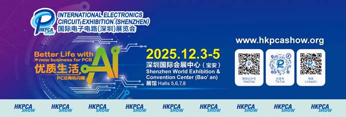 作为全球线路板及电子组装领域的领航盛会,国际电子电路(深圳)展览会(HKPCA Show)将于12月3 - 5日在深圳国际会展中心(宝安)5、6、7及8号馆盛大举办!本届展会以“优质生活·AI—PCB商机闪耀”为主题,展览面积达80,000m²,汇聚600+全球企业,聚焦高端HDI、玻璃基板制造、高频高速材料、AI与智能生产、光刻及检测设备、先进封测技术及精密元器件应用等前沿技术与热门方向,全景呈现产业链上下游的完整生态。