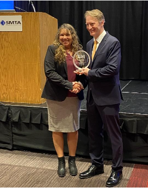 First, the SMTA honored Sherry Stepp, Global Marketing Manager, with a 2022 Members of Distinction Award. Stepp was chosen for an Excellence in Leadership Award. Since she joined the SMTA in 2009, Stepp has been an important voice with the Marcom Committee, the Women’s Leadership Program and the Expos Committee. Since 2020 she took on leadership roles with her local Huntsville chapter, first as President and most recently as VP of Membership.