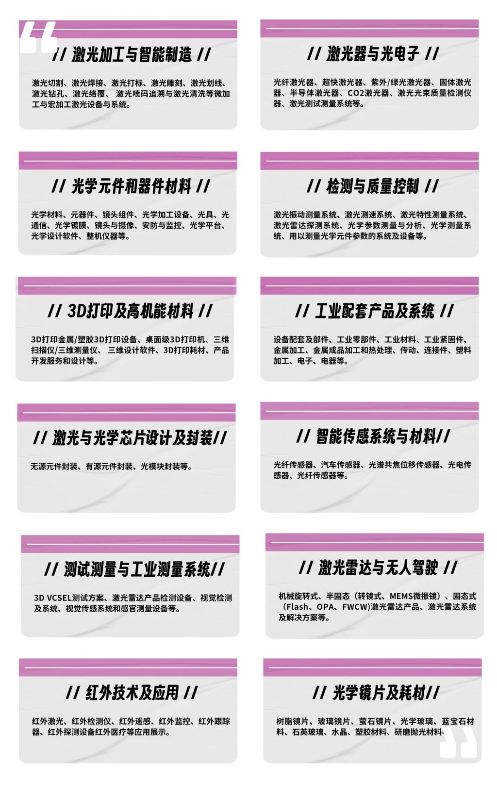 01深圳激光展商务采购专区结合“一对一的采购专场”和“高端沙龙会议”形式,云集多家优质激光应用采购商、激光设备和配套等供应商及专家学者,提供有效交流合作的平台。专区聚焦热点激光应用,多维度区分应用行业,便捷展商与采购商面对面交流,精准促成合作机会。