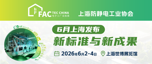 2026中国静电防护产业展将于6月2日至4日在上海世博展览馆举行。本届展会由Fac Tec China电子工厂设施展、NEPCON China中国国际电子生产设备暨微电子工业展与上海防静电工业协会共同呈现。