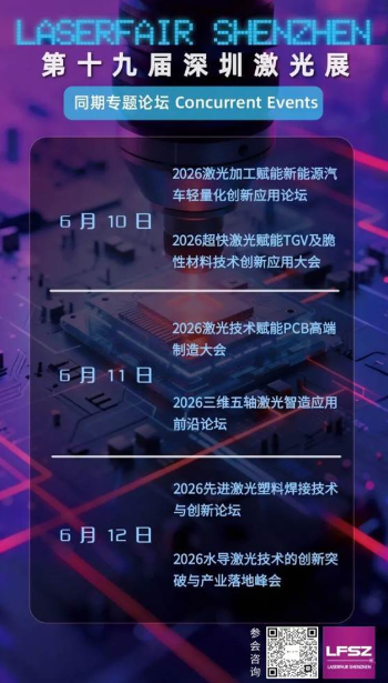 同期将举办六大专题论坛,全面呈现激光技术的前沿突破与产业融合。系列会议聚焦新能源汽车轻量化、TGV及脆性材料加工、PCB高端制造、三维五轴智造、塑料焊接创新与水导激光产业化等核心议题,全方位探讨激光技术在精密制造、电子信息、先进封装等关键领域的创新应用与落地前景,共同驱动智能制造与产业升级。